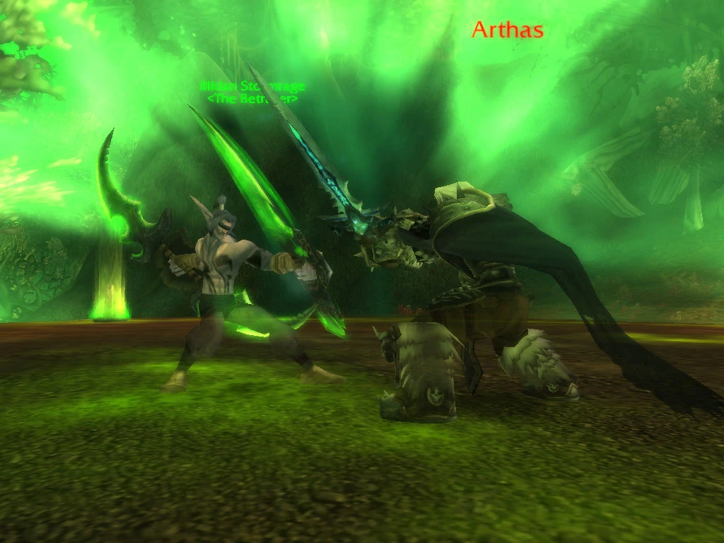 Arthas warned Illidan to leave Azeroth and never return. Refusal from Illidan initiated a short but intense duel, with Illidan Inadvertently leaving himself open. Arthas pressed the advantage, slicing open the demon hunter's chest with Frostmourne. Illidan collapsed in the snow, as Arthas turned towards the gates of icecrown triumphant.